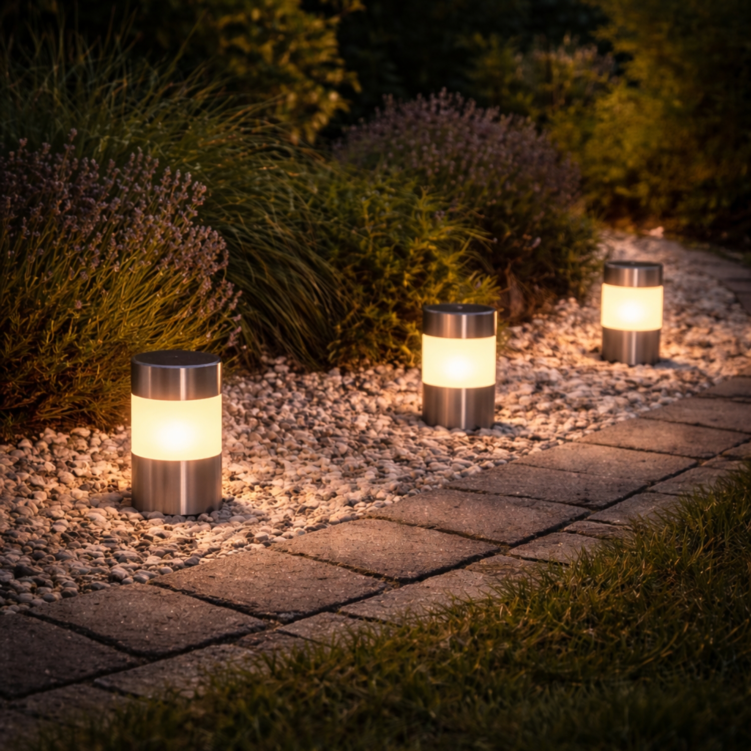 Le lampade segnapassi, ad esempio, sono perfette per accompagnare il percorso con fasci di luce eleganti ma discreti. Sulle scale, invece, puoi optare per luci laterali o piccole lampade portatili per rendere ogni gradino ben visibile.