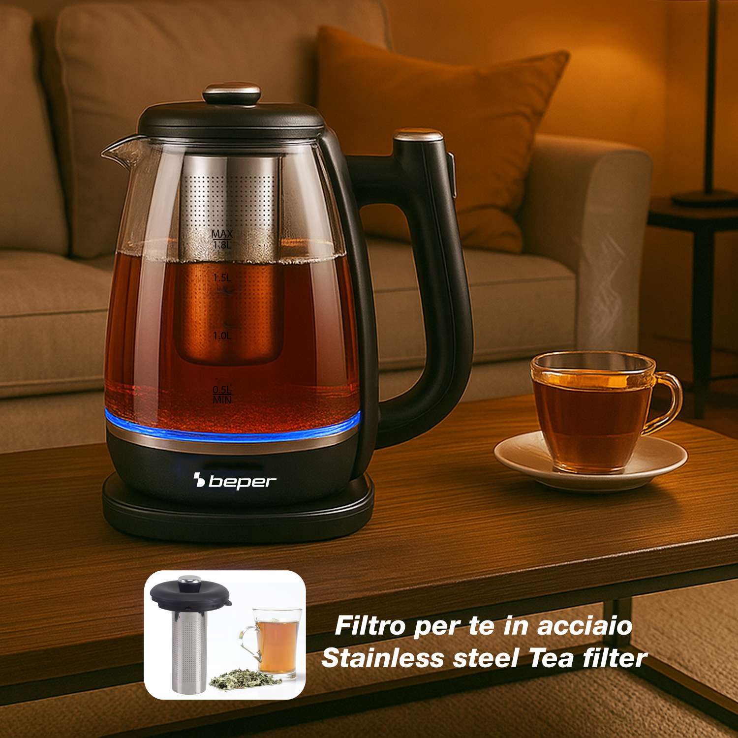 - SICUREZZA GARANTITA: Il bollitore Beper è dotato di spegnimento automatico a fine bollitura e in assenza d’acqua, più sistema anti-surriscaldamento.
