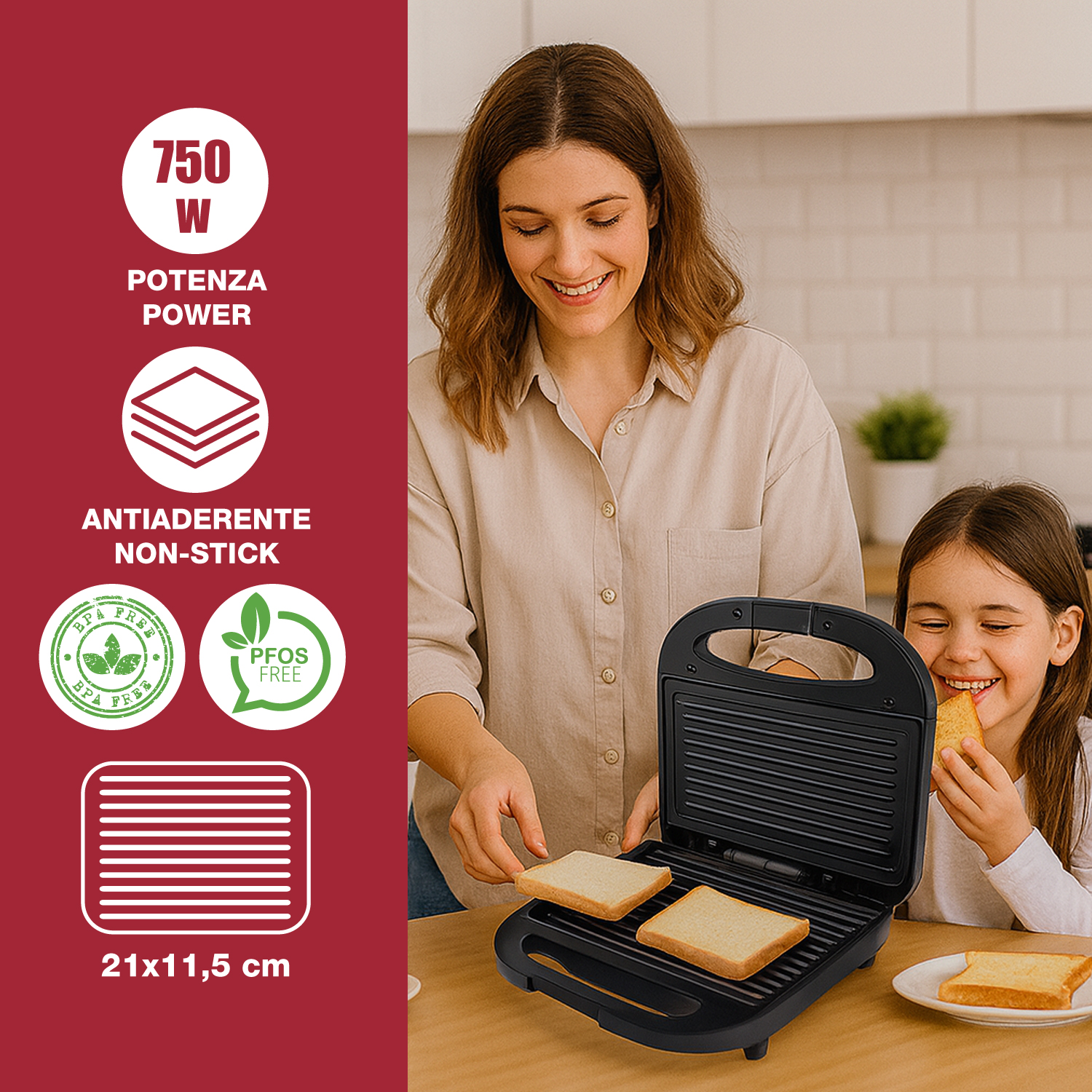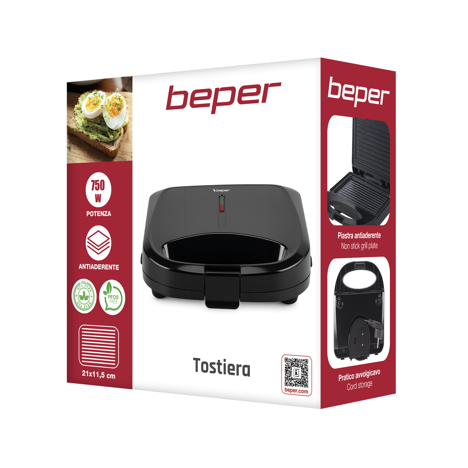 - TOSTIERA ELETTRICA 750W: La tostiera Beper è ideale per preparare velocemente snack, panini farciti e alimenti da grigliare.
