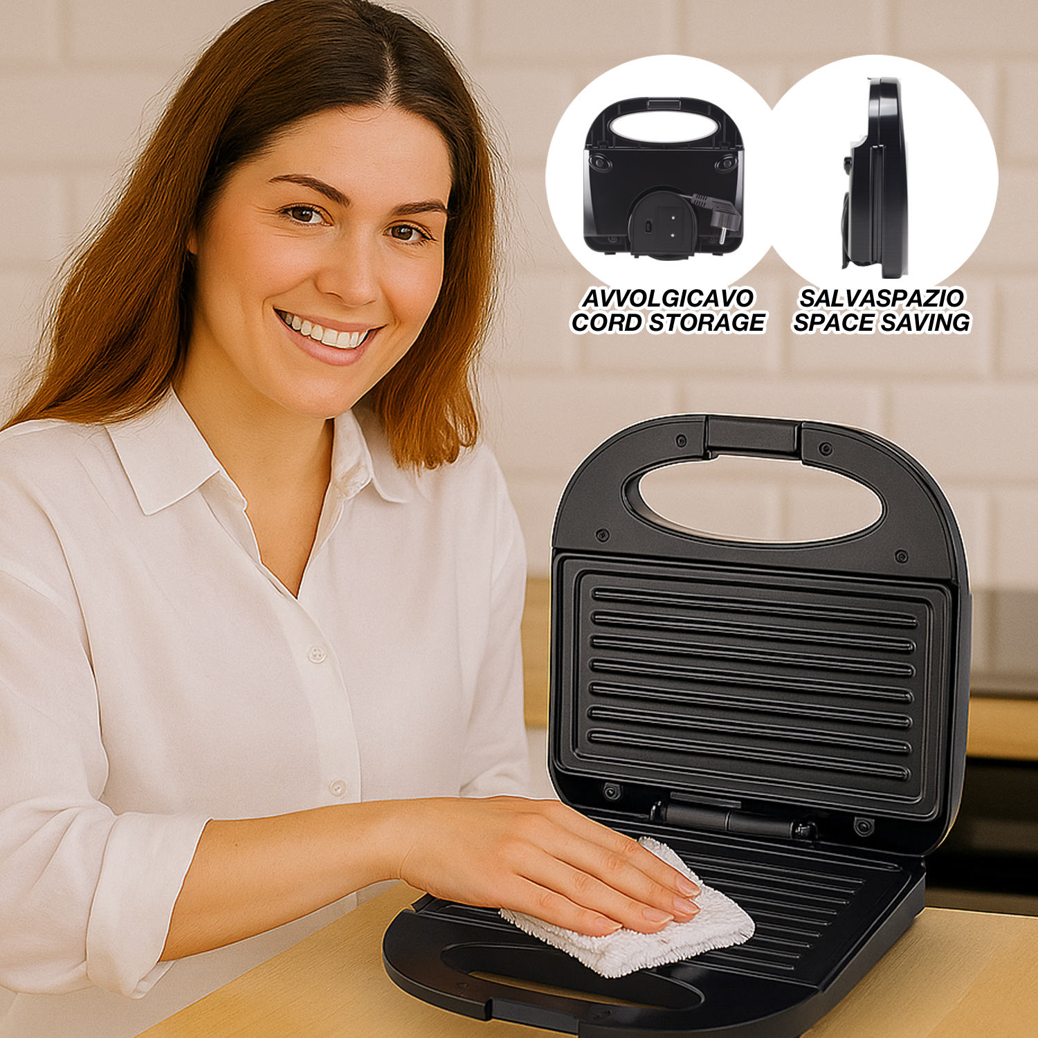 - DESIGN STABILE E COMPATTO: La piastra elettrica possiede dei piedini antiscivolo per la massima sicurezza e avvolgicavo integrato per una cucina sempre ordinata.