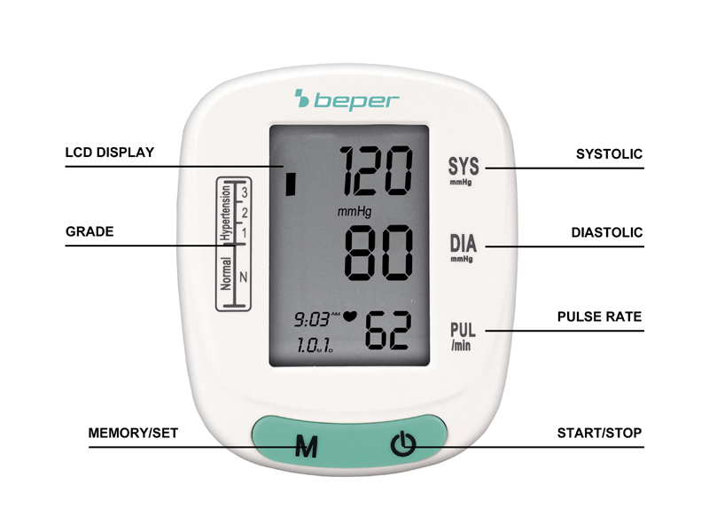 COMFORT PORTATILE: Beper ha ideato il Misuratore di pressione digitale da polso con visualizzazione simultanea dei valori sistolici, diastolici e pulsazioni cardiache con tempo di misurazione breve. A fine misurazione sarà possibile riporre il misuratore nella custodia rigida inclusa.