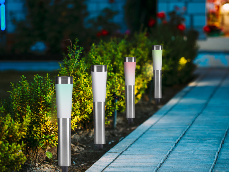 SEGNAPASSI DI QUALITÀ: Luce solare da giardino con corpo in acciaio / plastica e pannello solare in vetro