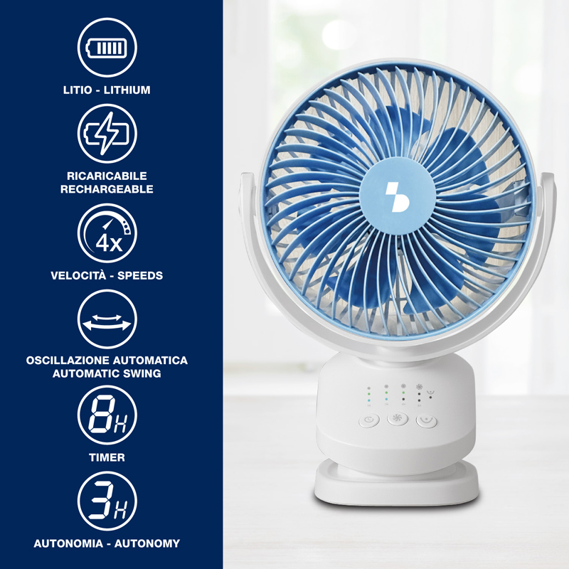 - VENTILATORE RICARICABILE E USO USB: Il ventilatore ricaricabile garantisce autonomia fino a 3 ore ed è utilizzabile anche collegato a PC o laptop.