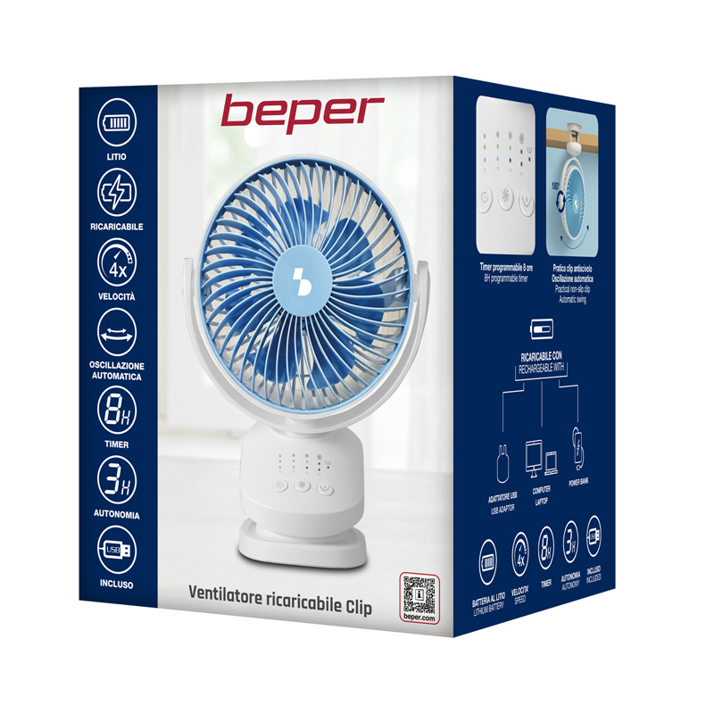 - 4 VELOCITÀ REGOLABILI: Il ventilatore portatile Beper offre 4 livelli di ventilazione per adattarsi a ogni esigenza, dal fresco leggero al flusso più intenso.