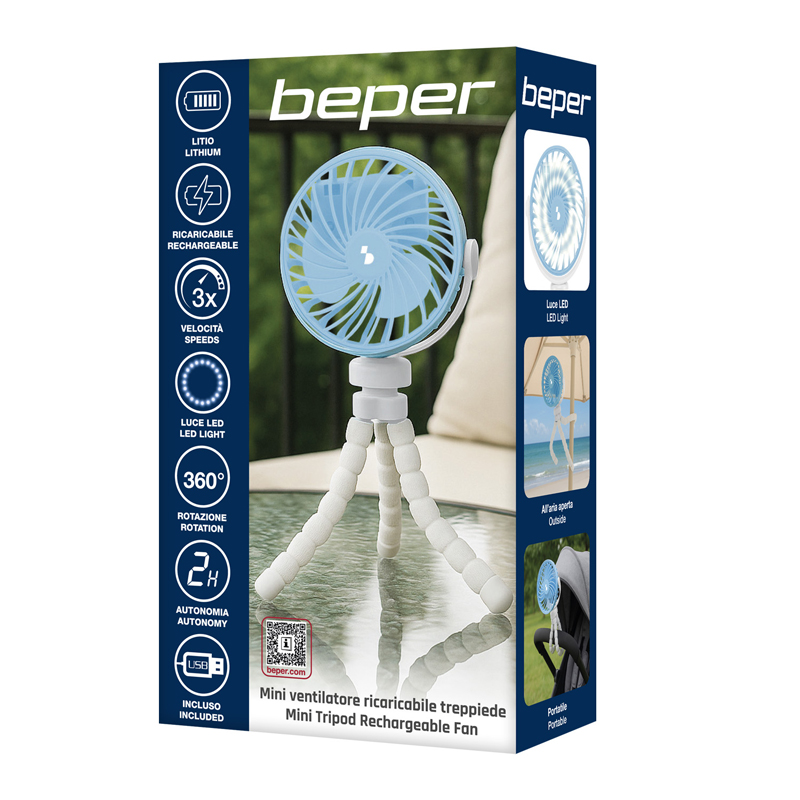 - MINI VENTILATORE RICARICABILE CON 3 VELOCITÀ: Il ventilatore portatile Beper offre 3 livelli di ventilazione per un comfort personalizzato durante le giornate più calde.